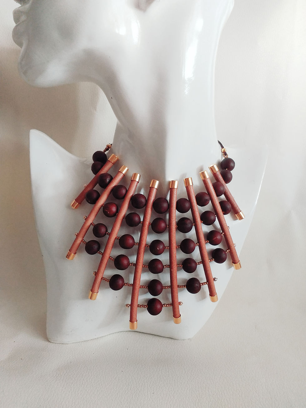 Ces bijoux artisanaux fabriqués en perles végétales et de cordon de cuir, présentant une géométrie atypique et un design inspiré, vous sublimeront en toutes circonstances.